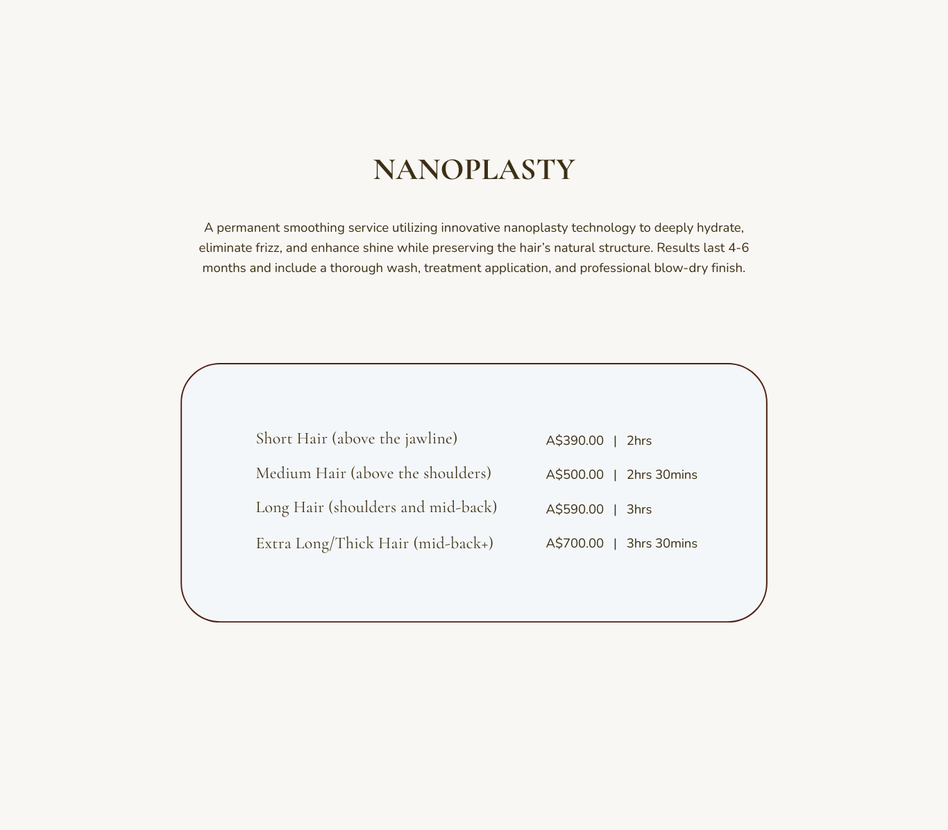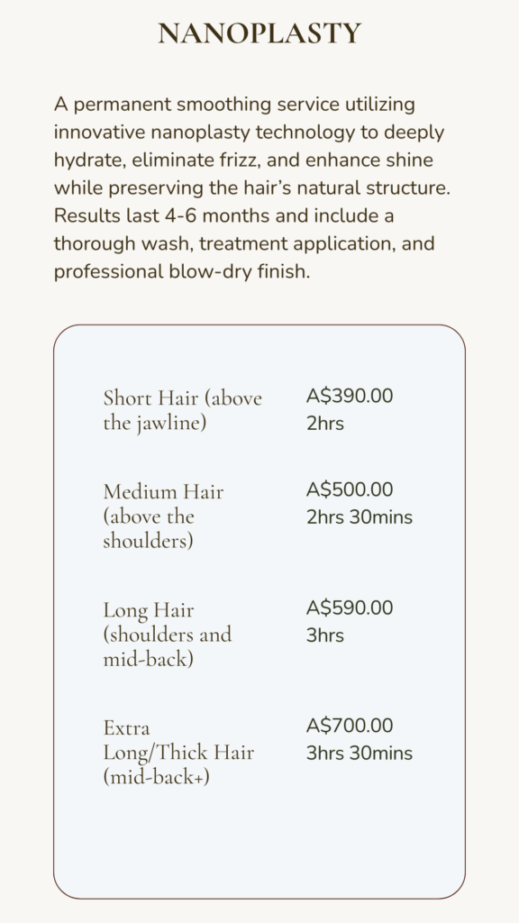 Book your Keratin or Nanoplasty Hair Treatment.